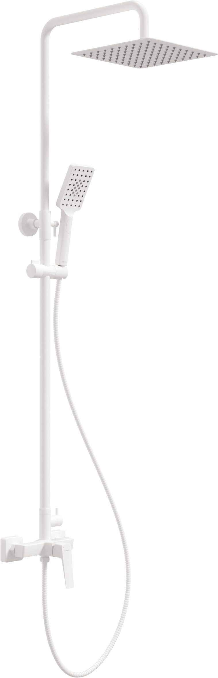 Deszczownica Blur z baterią, słuchawką prysznicową, głowicą natryskową oraz wężem to kompletny i elegancki zestaw do łazienki. Głowica natryskowa zapewnia przyjemny, równomierny strumień wody. Drążek oraz głowica wykonane są ze stali nierdzewnej, co zapewnia trwałość i odporność na korozję. Słuchawka prysznicowa posiada trzy tryby strumienia: deszczowy, mieszany i mgiełka wodna, a wygodny przełącznik typu “click” umożliwia szybką zmianę strumienia wody. Wąż natryskowy o długości 150 cm wyposażony jest w system Anti-twist, który zapobiega jego skręcaniu się podczas użytkowania. Całość wykończona w estetycznym białym kolorze, który idealnie wpasowuje się zarówno w klasyczne, jak i nowoczesne wnętrza łazienkowe.