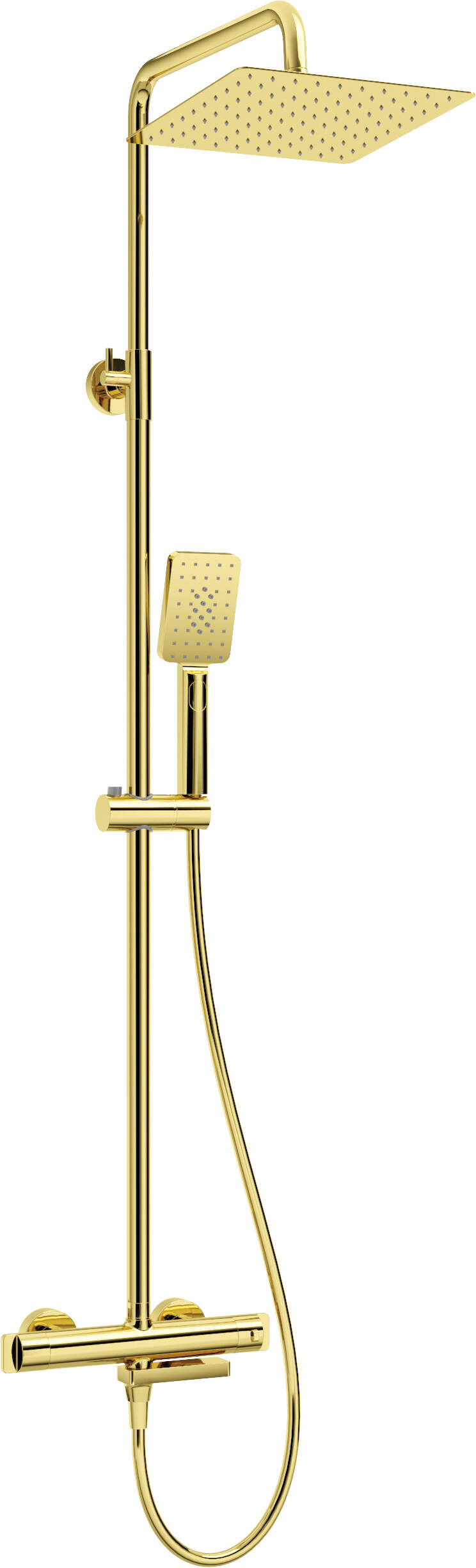 Deszczownia Cascada z baterią wannową termostatyczną to designerski, a jednocześnie bezpieczny i przemyślany produkt. Deszczownia posiada baterię z ruchomą wylewką, która równocześnie pełni funkcję przełącznika natrysku. Blokada temperatury 38 stopni zapobiega przypadkowemu poparzeniu, zapewniając komfortową kąpiel. Ergonomiczne pokrętła, poza walorami dekoracyjnymi, pozwalają na precyzyjne sterowanie głowicą. Ultra cienka głowica prysznicowa i 3-funkcyjna słuchawka wyposażone zostały w system anti-calc, który zapobiega osadzaniu się kamienia i tym samym ułatwia utrzymanie produktu w czystości. Złote, błyszczące wykończenie wprowadzi do twojej łazienki nutkę ekstrawagancji. Wszystko to sprawia, że deszczownia Cascada poza świetnym wyglądem jest również bardzo funkcjonalna.