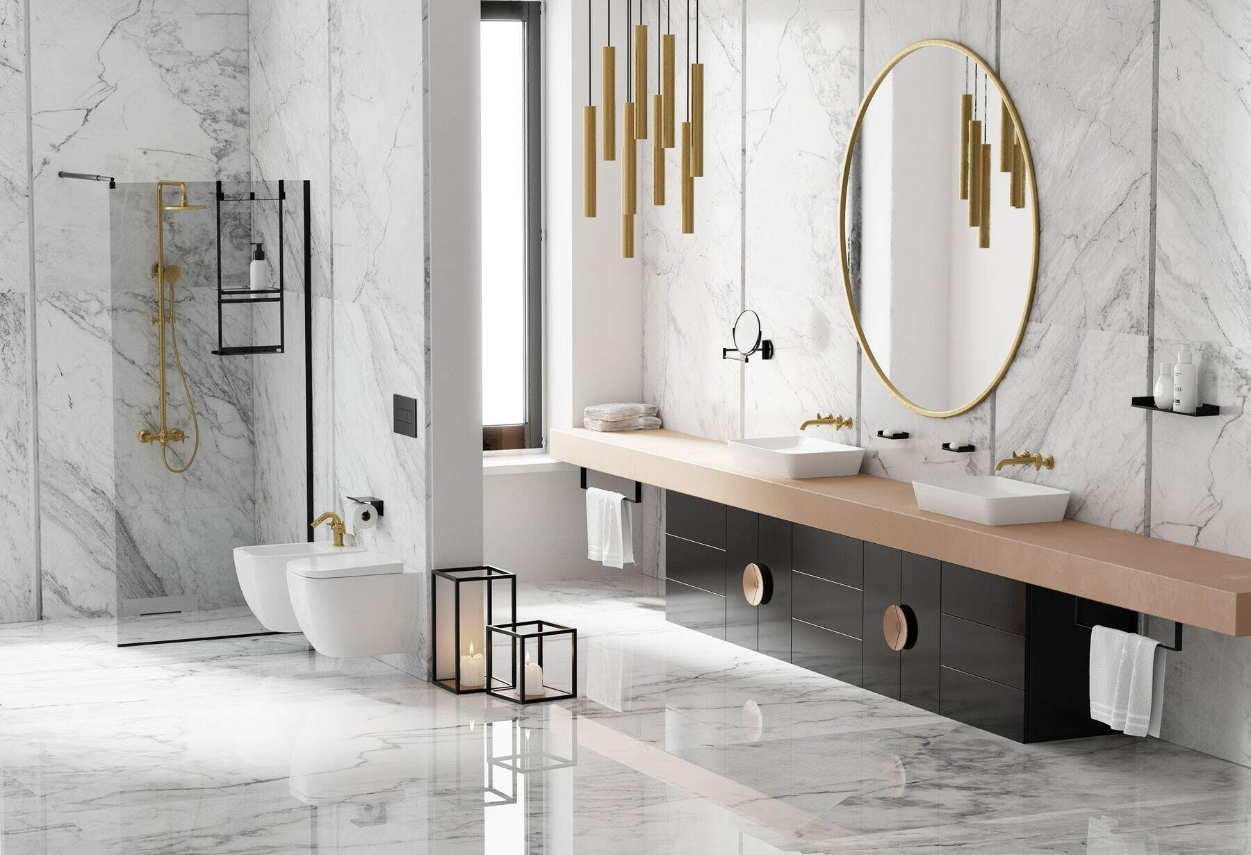 Kabina prysznicowa wykonana jest z wysokiej jakości szkła hartowanego. Jest ono bardzo odporne i sprężyste, zapewniając maksymalne bezpieczeństwo całej rodzinie. Części montażowe są estetycznie wykończone zgodnie z kolorystyką i stylistyką innych elementów z serii. Cała kabina jest bardzo przestronna. Kabina prysznicowa jest typu otwartego, nazywanego popularnie walk-in. Nie posiada tradycyjnych elementów ruchomych, przesuwanych takich jak drzwi, co niweluje ryzyko awarii na przykład rolek czy prowadnicy. Element ma 110 cm szerokości. Kolekcja kabin Abelia zespala użyteczność produktu z estetyką wykończenia. Dodatkami do transparentnych tafli z 6-milimetrowego szkła hartowanego są jedynie chromowane zawiasy, profile przyścienne, uchwyty oraz drążki stabilizujące. Wszelkie mocowania zostały zamaskowane listwami aluminiowymi. Kabiny mają możliwość montowania bez brodzika, a dzięki profilom wyrównującym krzywiznę ścian, ich instalacja jest bardzo prosta. Szyby pokryte są hydrofobową powłoką Active Cover. Deszczownia posiada regulowaną wysokość górnej głowicy oraz system Anti Calc, ułatwiający usuwanie osadu kamiennego. Cała kolekcja wykończona jest w błyszczącym chromie i pasuje zarówno do klasycznej, jak i nowoczesnej aranżacji.