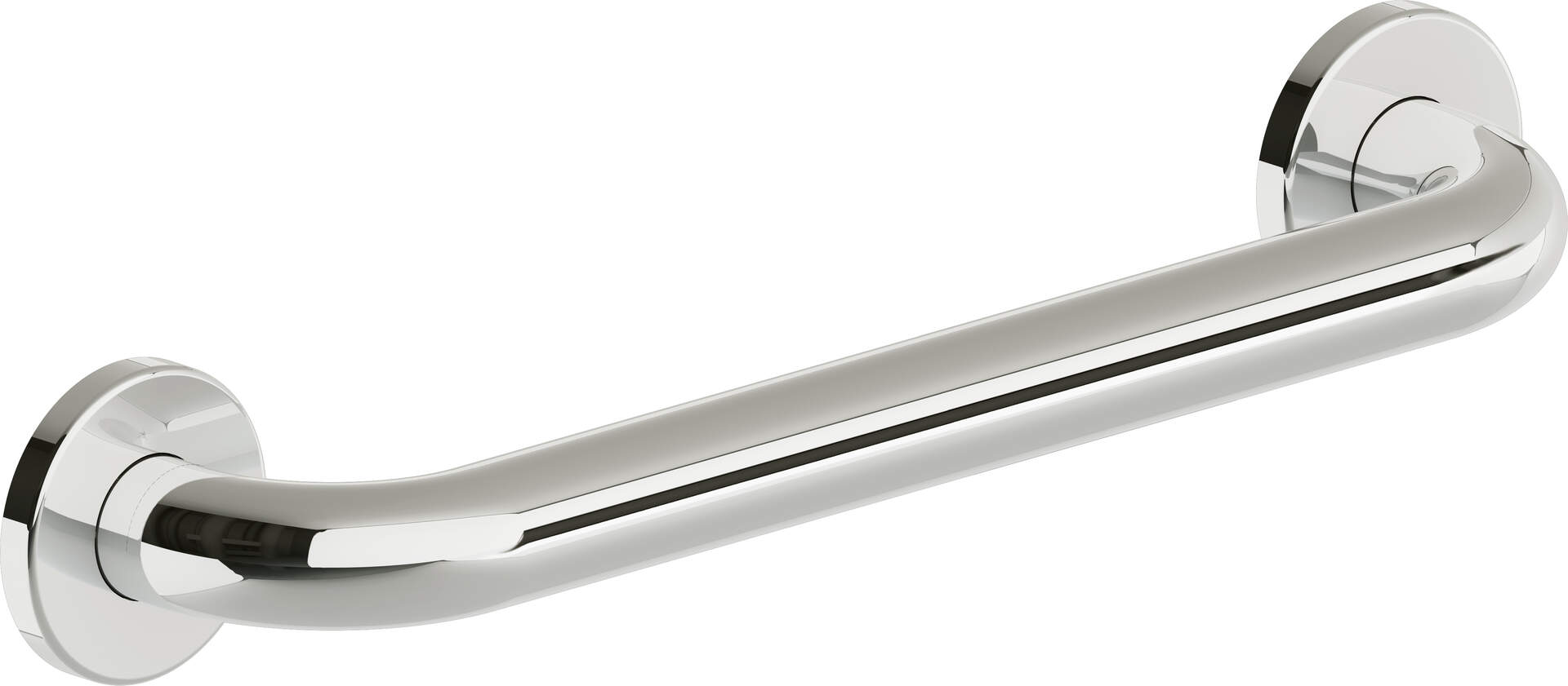 Uchwyt przyścienny wykonany ze stali nierdzewnej o długości 30 cm. Rozety o średnicy 71mm wykonane z tworzywa sztucznego pokrytego chromem. W komplecie zestaw montażowy do twardego podłoża (ściany z pełnej cegły/ betonu). Maksymalny udźwig 150 kg. Produkt jest wyrobem medycznym.